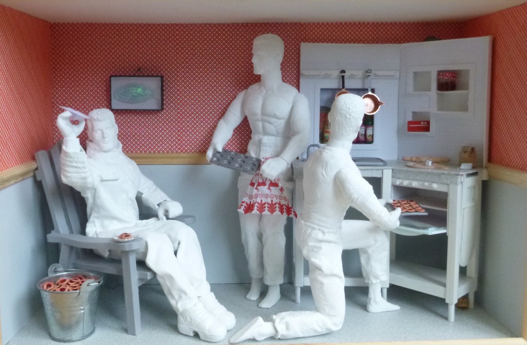 Clockwise: The Bather 2009, The Knitting Circle 2008, The Busker 2018, The Tea Party 2015